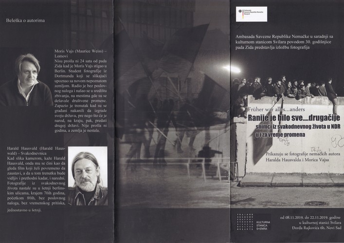 U četvrtak 07.11.2019. u Novom Sadu, ambasada Savezne Republike Nemačke u saradnji sa Kulturnom stanicom "Svilara", a povodom tridesete godišnjice pada Berlinskog zida, predstavila je izložbu fotografija nemačkih autora Haralda Hausvalda i Morica Vajsa. Autori su zabeležili kamerama scene iz svakodnevice Istočne Nemačke osamdesetih godina i trenutke pada Berlinskog zida 9. novembra 1989. godine.
